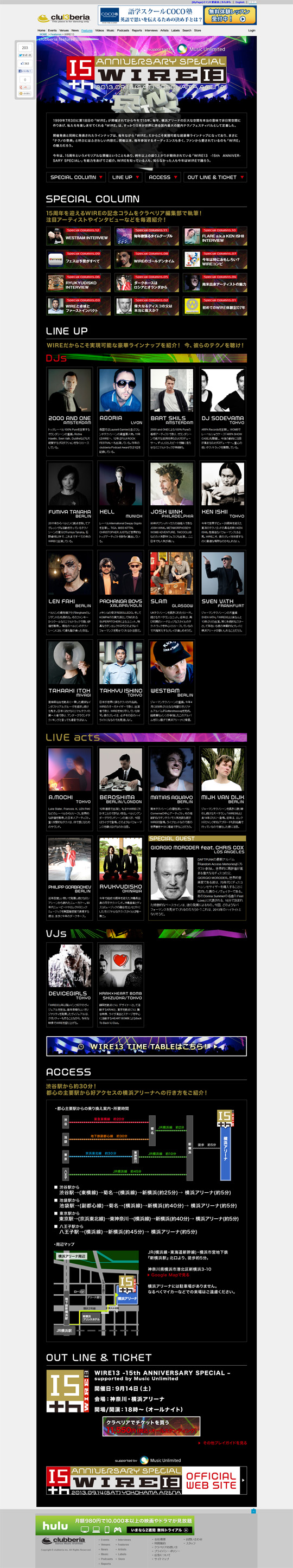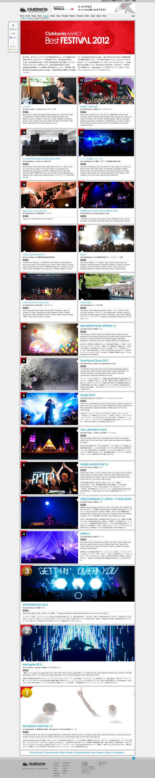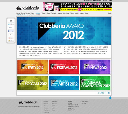 クラブミュージックのポータルサイトclubberiaの特集ページを制作しました。