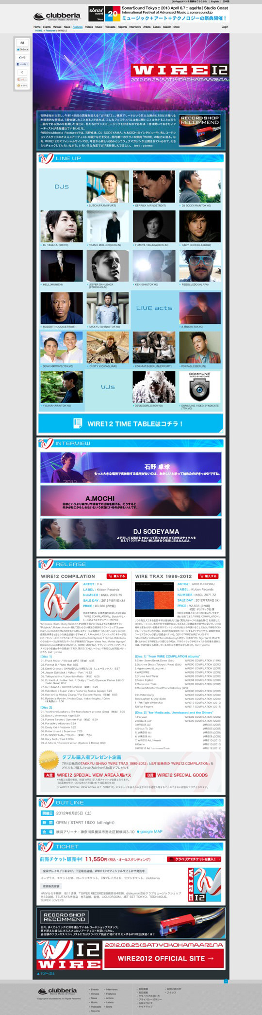 国内最大のテクノイベント「wire2012」「wire2013」、pionierのデジタルDJ機器「XDJ-AERO」、2012年総括「コラム」、クラブイベントのジャンルごとのランキング「Clubberia AWARD2012」をデザインしました。